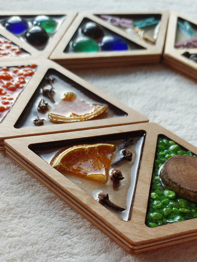 Są one zaprojektowane tak, aby poprzez dotyk i wzrok, rozwijać zdolności percepcyjne oraz motoryczne. Używanie gier sensorycznych pomaga dzieciom w rozwijaniu koncentracji i pamięci, ponieważ wymaga zapamiętywania różnych tekstur i kształtów.